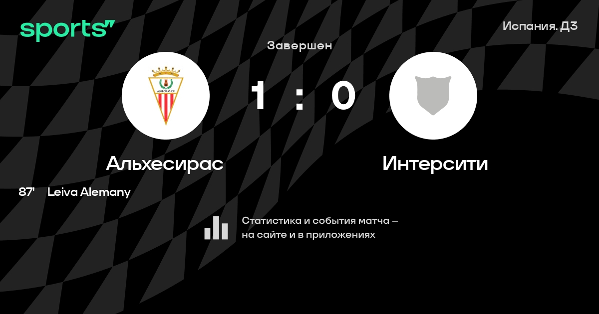Результат прошлой игры в турнире «Первый дивизион RFEF»: Интерсити – Атлетико Санлукеньо 1:2. После 19 туров Интерсити набирает 15 очков и занимает 20 место в турнире. Лучший бомбардир команды – Юрген Локадия: он забил 4 в 11 матчах. Интерсити не может выиграть в 5 последних матчах в рамках турнира «Первый дивизион RFEF». В 3 последних матчах в турнире «Первый дивизион RFEF» Интерсити обязательно забивает. Интерсити пропускает в 11 последних матчах в турнире «Первый дивизион RFEF». В последних 5 играх Интерсити забивает 4 голов. В последних 5 играх Интерсити пропускает 8 голов.