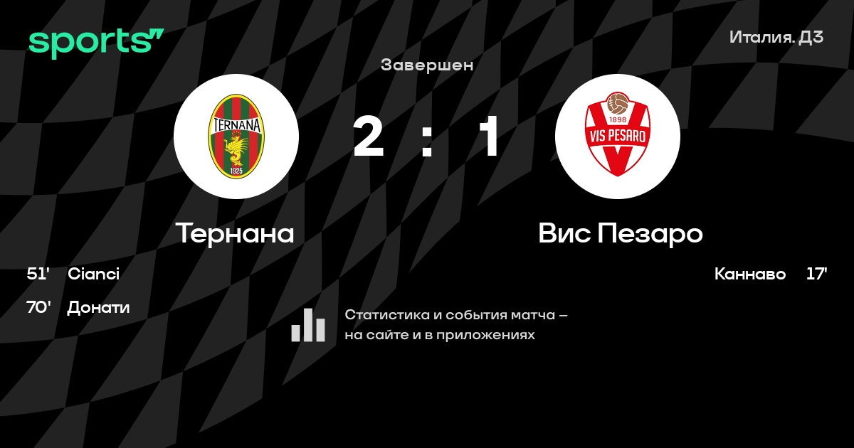 Результат прошлой игры в турнире «Серия С»: Pineto – Тернана 1:0. После 23 туров Тернана набирает 45 очков и занимает 3 место в турнире. Лучший бомбардир команды – Эмануэле Чичерелли: он забил 13 в 22 матчах. В последних 5 играх Тернана забивает 3 голов. В последних 5 играх Тернана пропускает 3 голов.