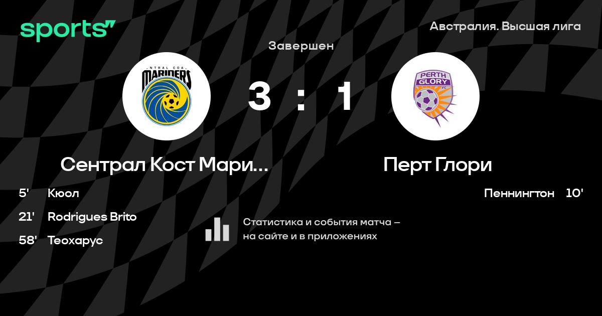 Сентрал Кост Маринерс – Перт Глори: Перт Глори забивает в 5 из 7 последних матчей против этого соперника