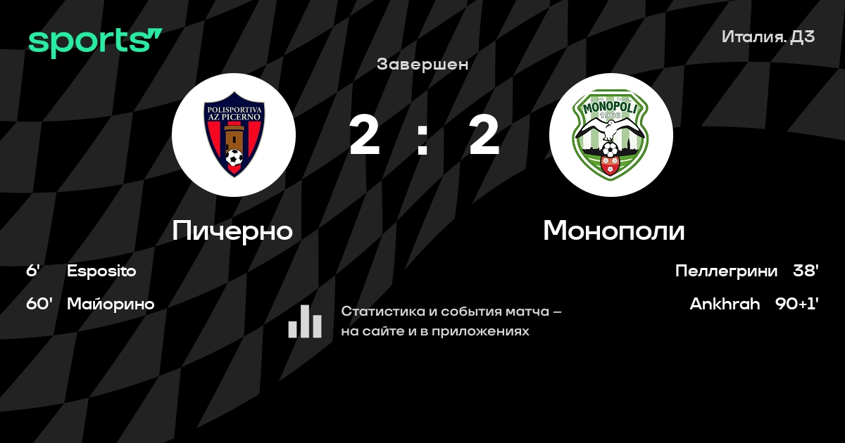 Пичерно – Монополи: Монополи не проигрывает в 6 последних матчах против этого соперника