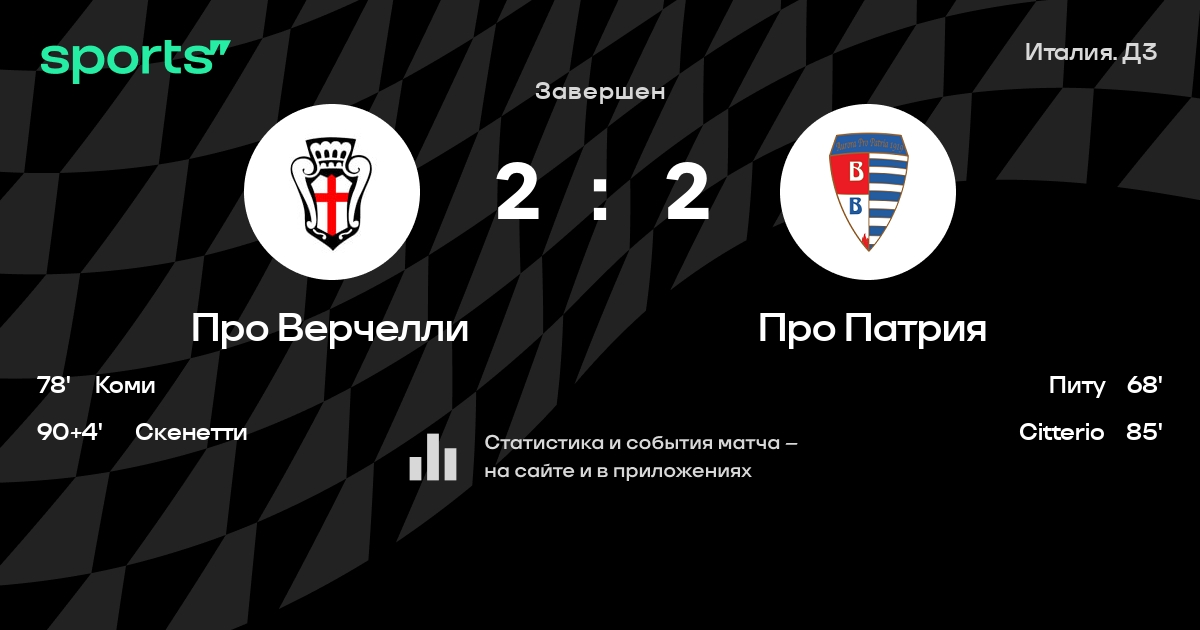 Про Верчелли – Про Патрия: Про Патрия забивает в 5 из 7 последних матчей против этого соперника