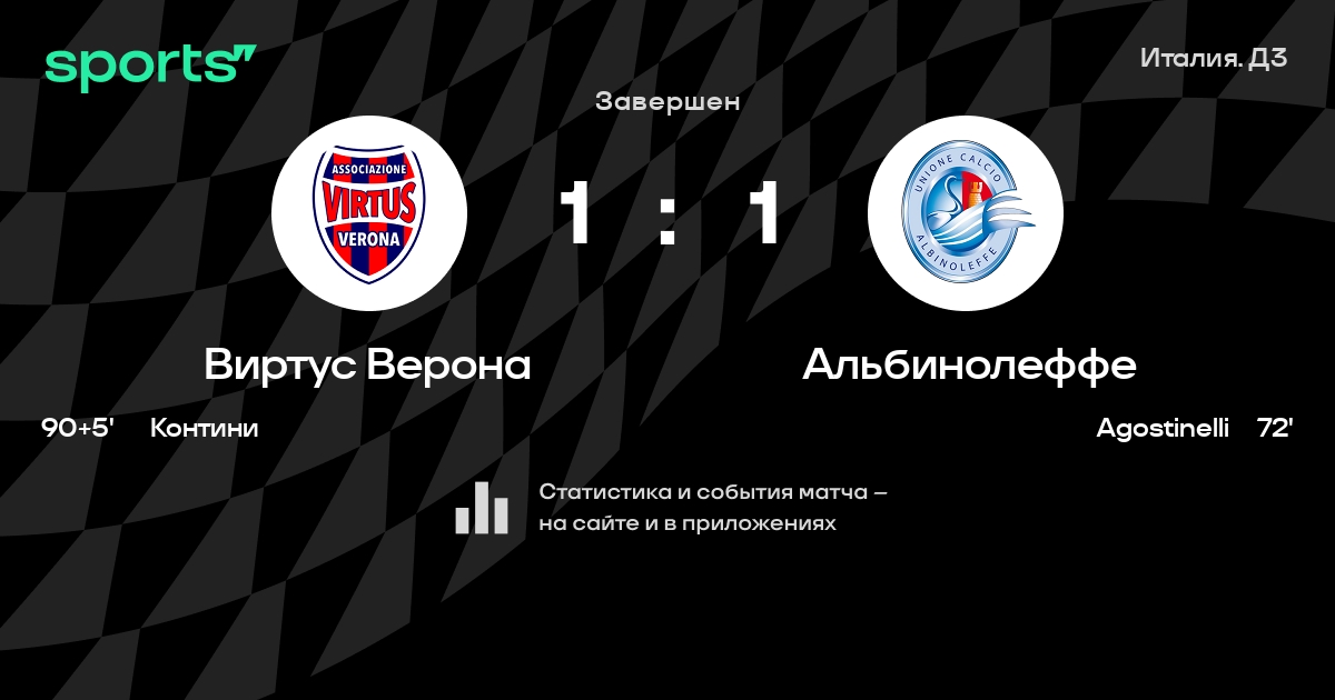 Виртус Верона – Альбинолеффе: Альбинолеффе забивает в 4 последних матчах против этого соперника