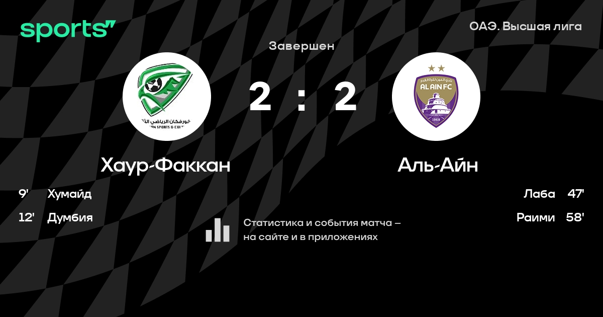 Результат прошлой игры в турнире «Высшая лига»: Хаур-Факкан – Аджман 0:2. После 13 туров Хаур-Факкан набирает 14 очков и занимает 10 место в турнире. Лучший бомбардир команды – Лоуренси: он забил 5 в 13 матчах. Хаур-Факкан пропускает в 24 последних матчах в турнире «Высшая лига». В последних 5 играх Хаур-Факкан забивает 7 голов. В последних 5 играх Хаур-Факкан пропускает 9 голов.