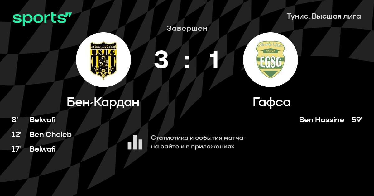 Бен-Кардан – EGS Gafsa: Бен-Кардан забивает в 5 из 7 последних матчей против этого соперника