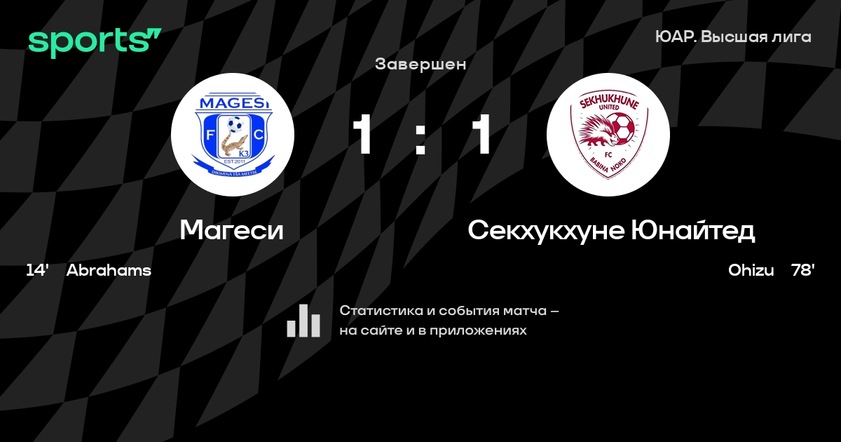 Чипезезе - Lehlegonolo Hlogi Mokone, Бутелези, Makgoga - John Managa Mokone, Мтшали, Дарпо, Delano Abrahams - Kayden Kyle Rademeyer, Масегела, SibanyoniЗапасные: Tshabalala, Malesa, Kakora, Матима, Мекоа, Baloyi, Чирамбадаре, Макхубела, Манзини