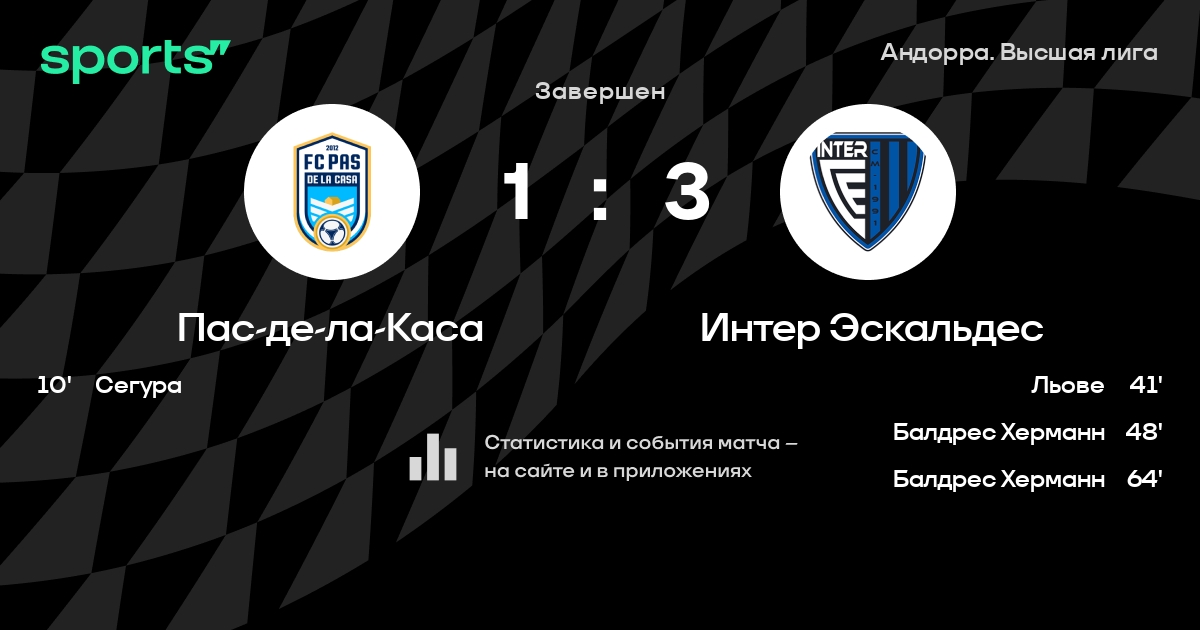 Трансляция Пас-де-ла-Каса - Интер Эскальдес