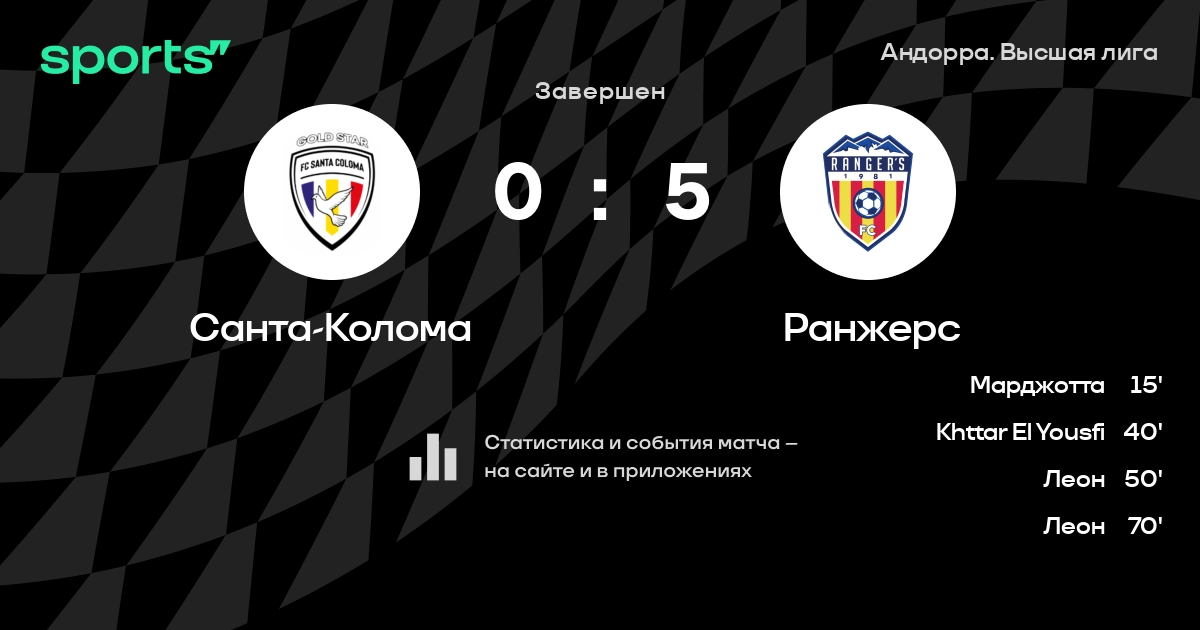 В последних 5 играх Рейнджерс Санта Колома забивает в среднем 1.20 гола за игру