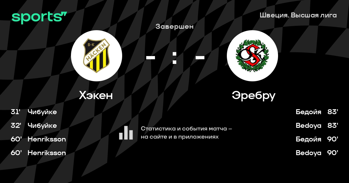 Челльквист - Lind, Эстберг, Седерберг - Фрелунд, Эльвбю, Nyström, Henriksson - Паулиньо, Чибуйке, Ранеги