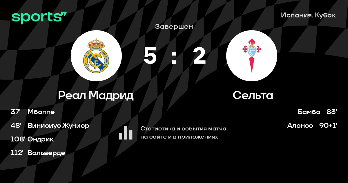 Лунин - Фран Гарсия, Рюдигер, Асенсио, Васкес - Себальос, Тчуамени, Модрич - Винисиус Жуниор, Мбаппе, Браим ДиасЗапасные: Гонсалес, Местре, Менди, Агуадо, Беллингем, Камавинга, Вальверде, Гюлер, Родриго, Эндрик