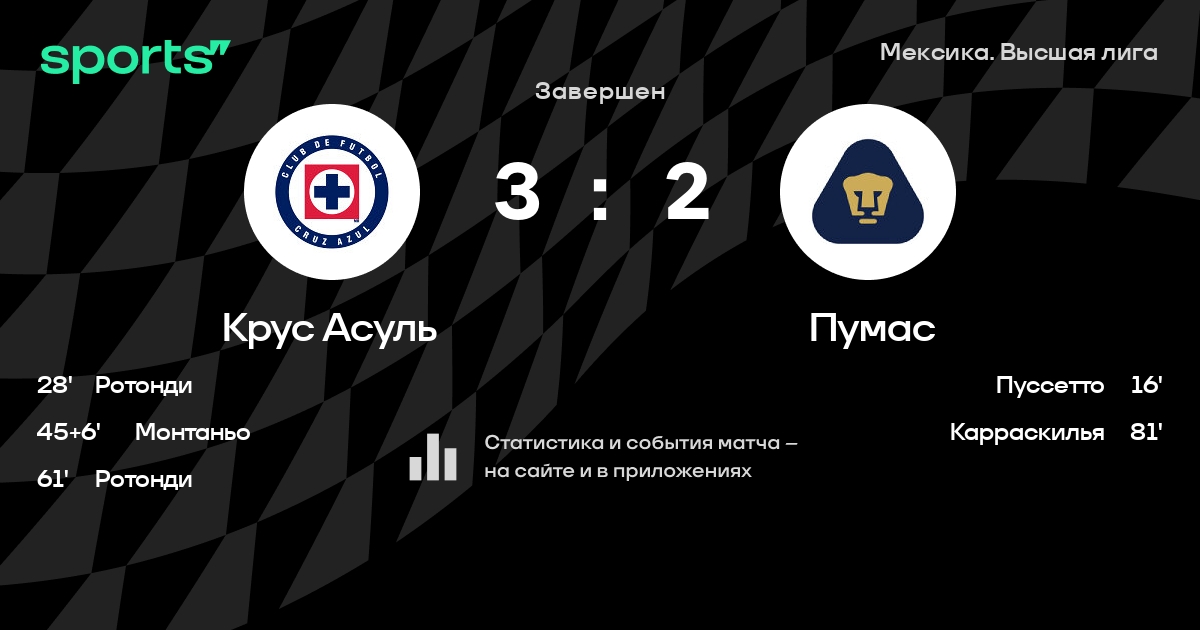 Крус Асуль – Пумас: Крус Асуль забивает в 3 последних матчах против этого соперника