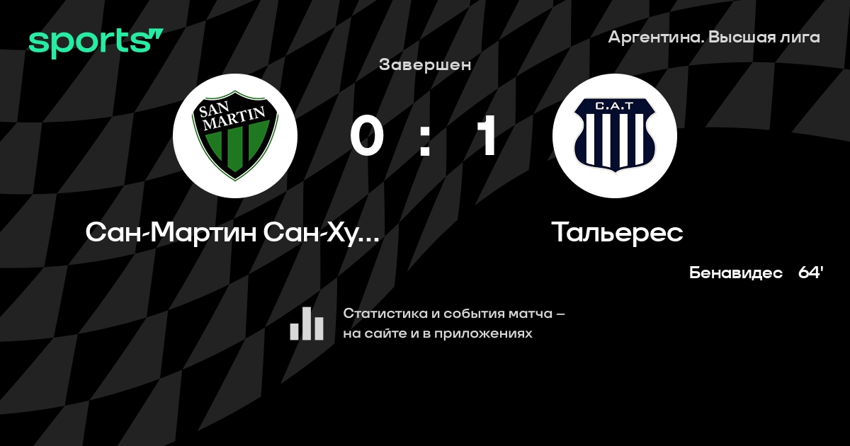 Сан-Мартин Сан-Хуан – Тальерес: Тальерес забивает в 3 последних матчах против этого соперника