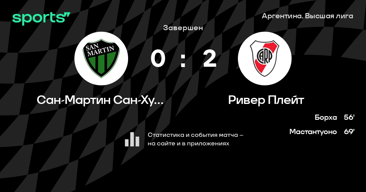 Сан-Мартин Сан-Хуан – Ривер Плейт: Сан-Мартин Сан-Хуан забивает в 6 последних матчах против этого соперника