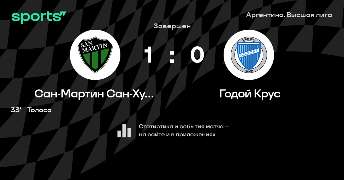 Сан-Мартин Сан-Хуан – Годой Крус: Годой Крус не пропускает в 3 последних матчах против этого соперника
