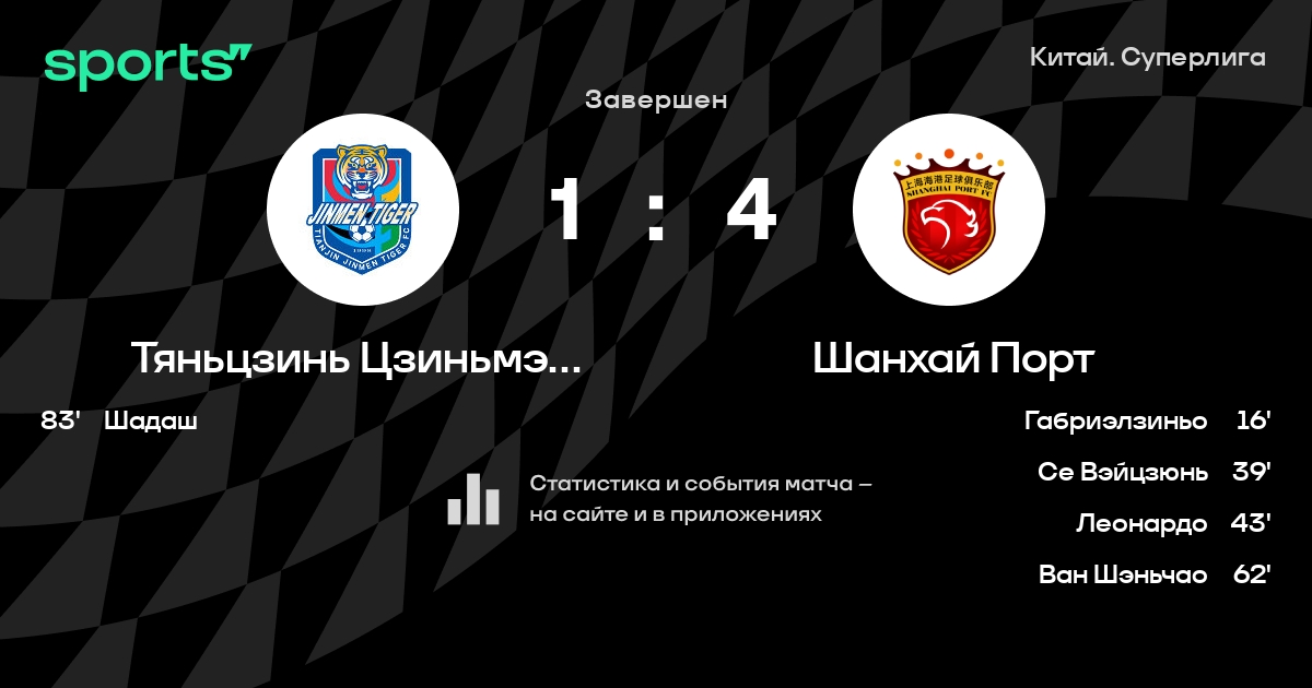 Тяньцзинь Цзиньмэнь – Шанхай Порт: Шанхай Порт забивает в 3 последних матчах против этого соперника