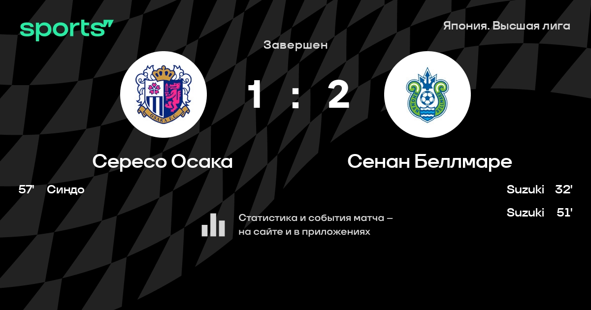 Сересо Осака – Сенан Беллмаре: Сересо Осака не проигрывает в 5 из 7 последних матчей против этого соперника в турнире «Джей-лига 1»