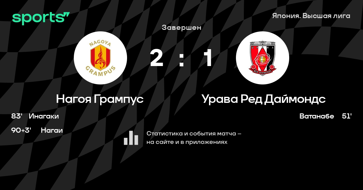 Нагоя Грампус – Урава Ред Даймондс: Урава Ред Даймондс забивает в 3 последних матчах против этого соперника