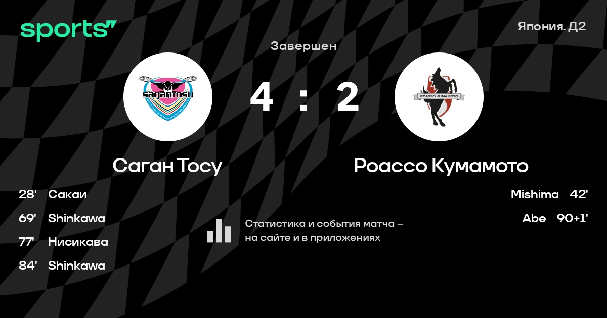 Саган Тосу – Роассо Кумамото: Роассо Кумамото не проигрывает в 6 последних матчах против этого соперника в турнире «Лига 2»