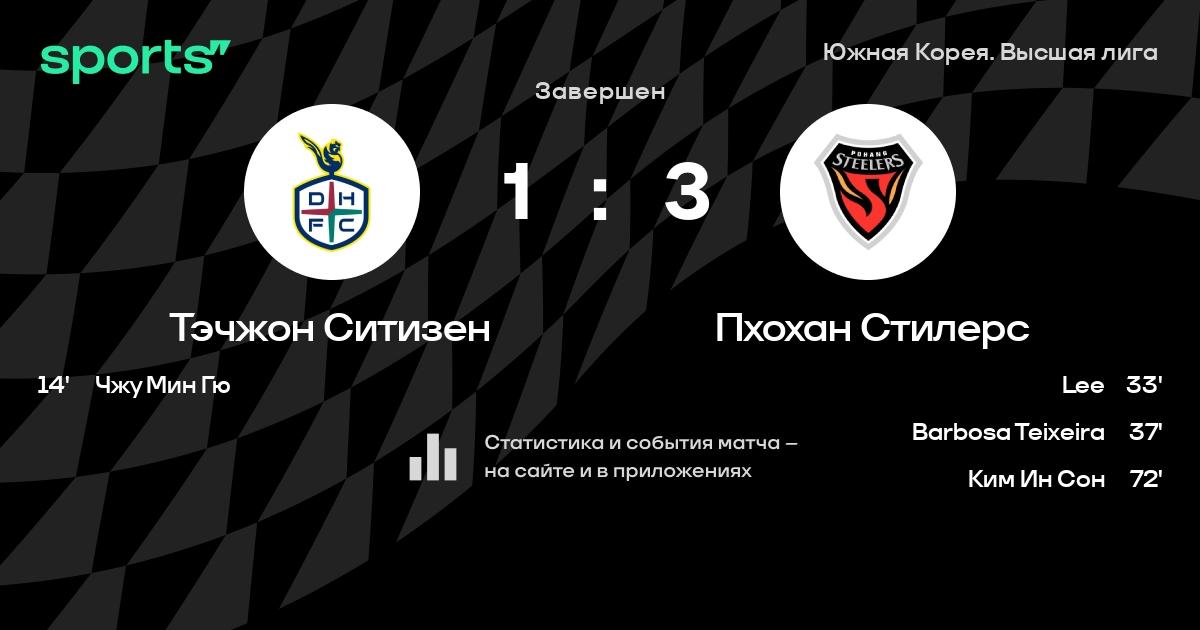 Тэчжон Ситизен – Пхохан Стилерс: Тэчжон Ситизен забивает в 6 последних матчах против этого соперника