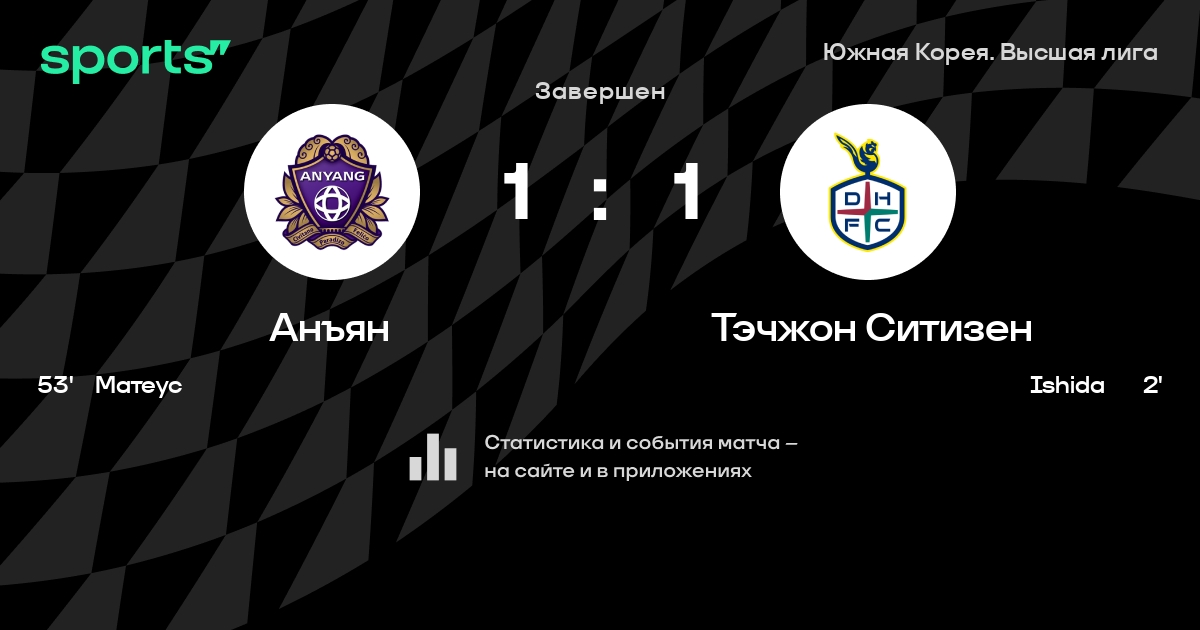 Анъян – Тэчжон Ситизен: Тэчжон Ситизен забивает в 11 последних матчах против этого соперника