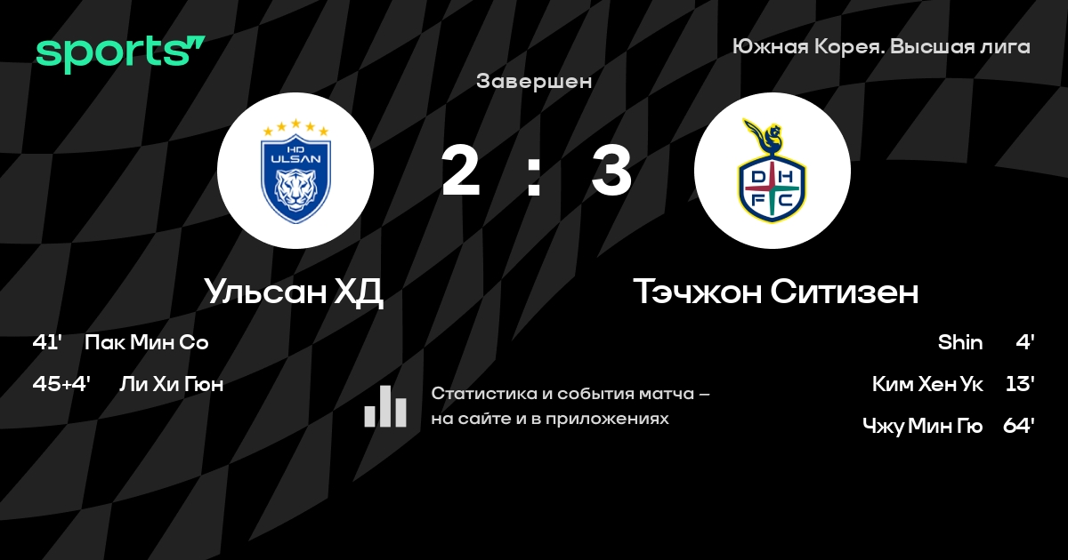 Ульсан ХД – Тэчжон Ситизен: Ульсан ХД забивает в 3 последних матчах против этого соперника