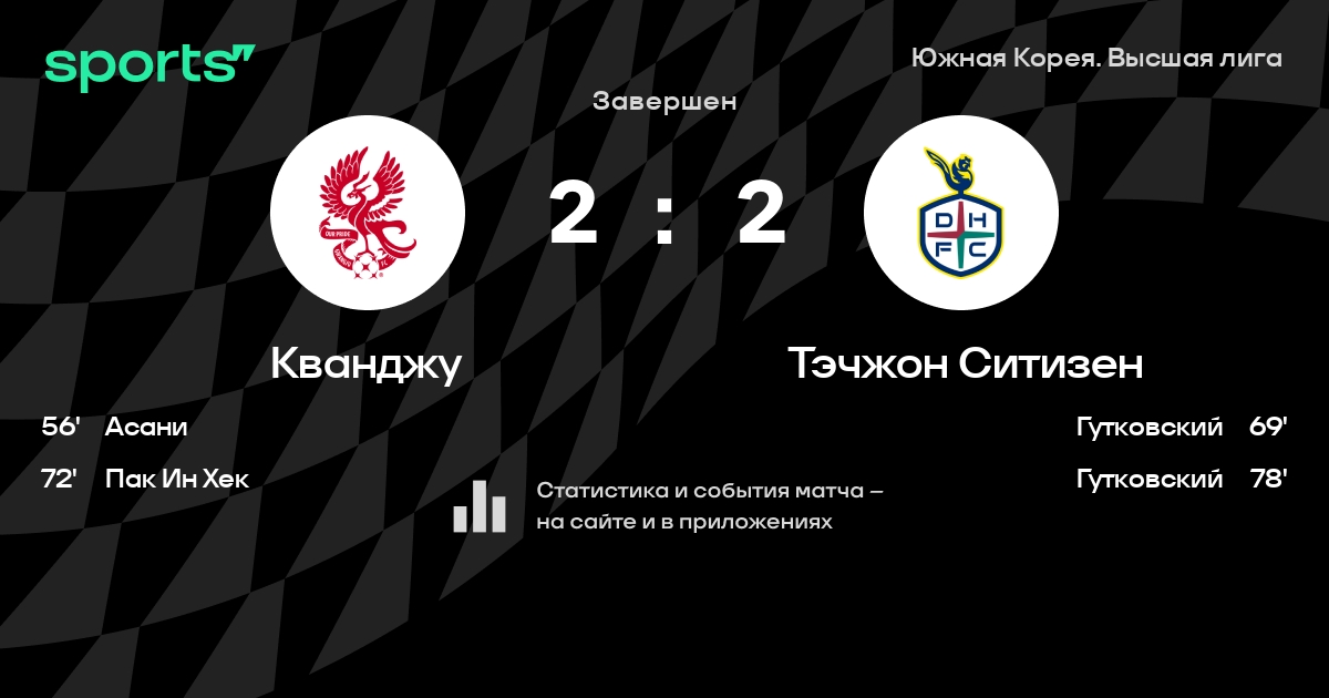 Кванджу – Тэчжон Ситизен: Кванджу не проигрывает в 6 последних матчах против этого соперника дома