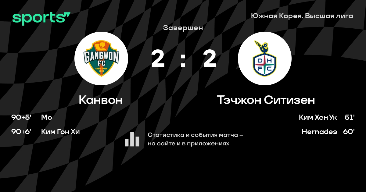 Канвон – Тэчжон Ситизен: Тэчжон Ситизен забивает в 4 последних матчах против этого соперника