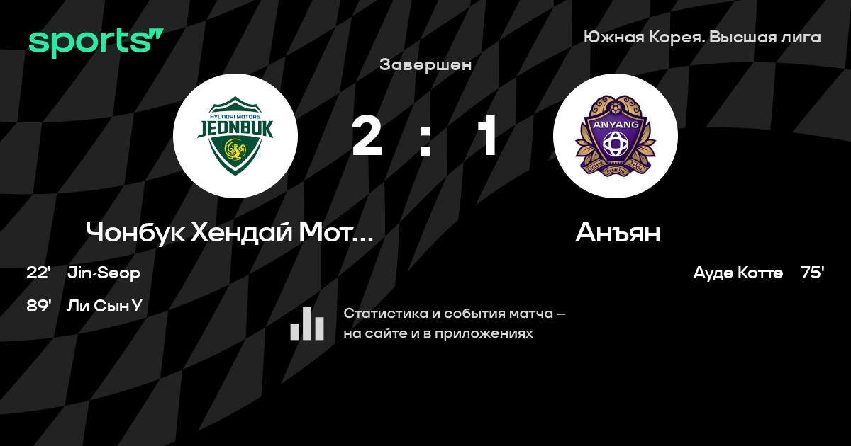 Результат прошлой игры в турнире «Высшая лига»: Сувон – Анъян 2:1. После 24 туров Анъян набирает 27 очков и занимает 11 место в турнире. Лучший бомбардир команды – Бруно Мота: он забил 10 в 24 матчах. В последних 5 играх Анъян забивает 6 голов. В последних 5 играх Анъян пропускает 7 голов.