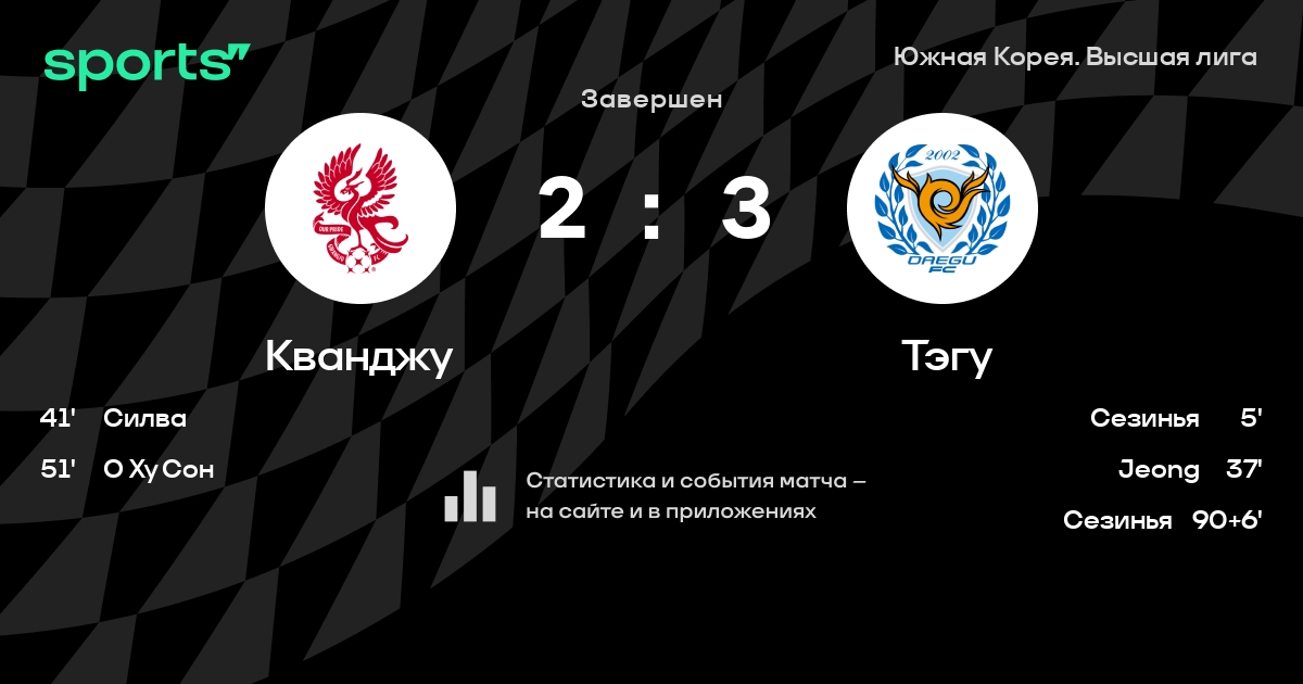 Кванджу – Тэгу: Тэгу забивает в 3 последних матчах против этого соперника