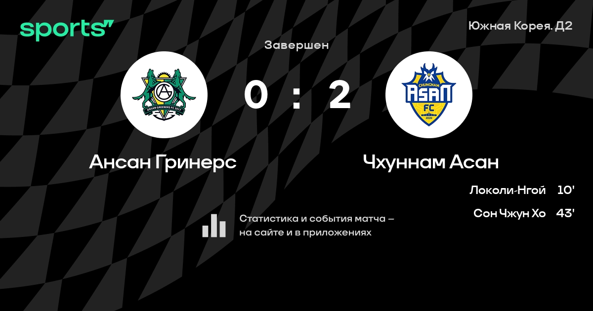 Ансан Гринерс – Чхуннам Асан: Чхуннам Асан не проигрывает в 5 из 7 последних матчей против этого соперника