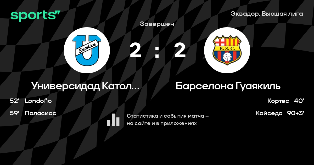 Универсидад Католика Кито – Барселона Гуаякиль: Барселона Гуаякиль не пропускает в 3 последних матчах против этого соперника