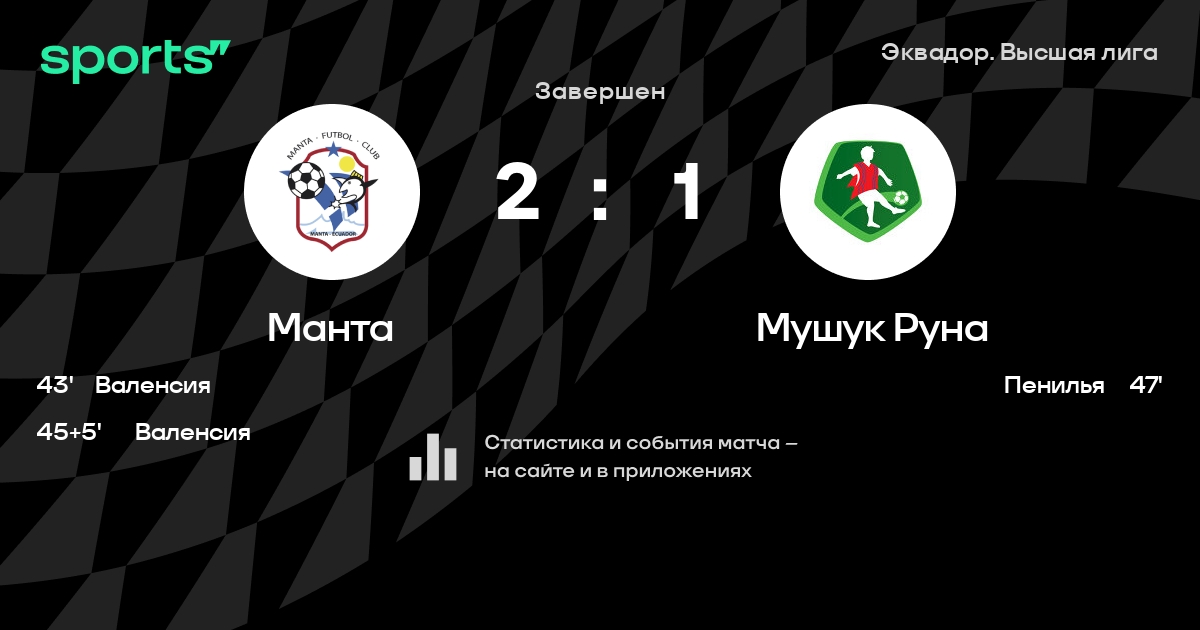 Манта – Мушук Руна: Мушук Руна не проигрывает в 6 последних матчах против этого соперника