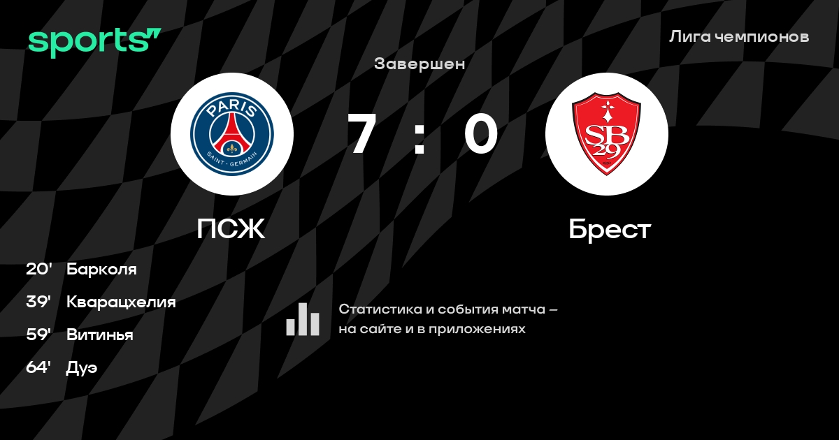 ПСЖ – Брест: ПСЖ побеждает в 4 последних очных матчах