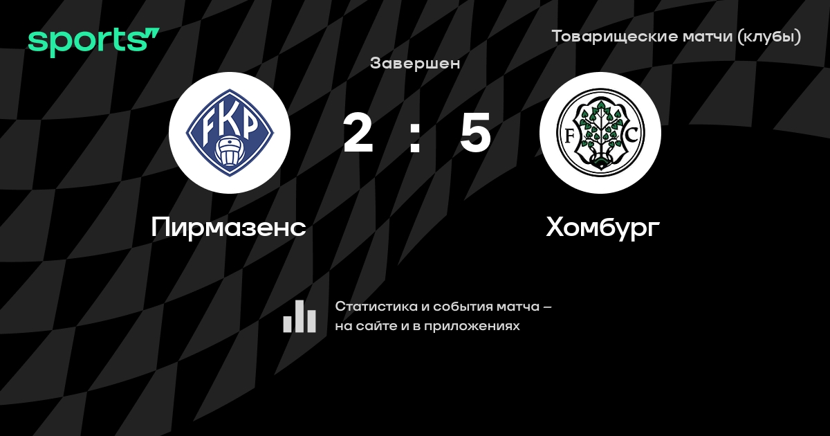 Результат прошлой игры в турнире «Товарищеские матчи (клубы)»: Хомбург – VfR Mannheim 5:0. Хомбург не проигрывает в 6 последних матчах в рамках турнира «Товарищеские матчи (клубы)». В 6 последних матчах в турнире «Товарищеские матчи (клубы)» Хомбург обязательно забивает. В последних 5 играх Хомбург забивает 13 голов. В последних 5 играх Хомбург пропускает 4 голов.