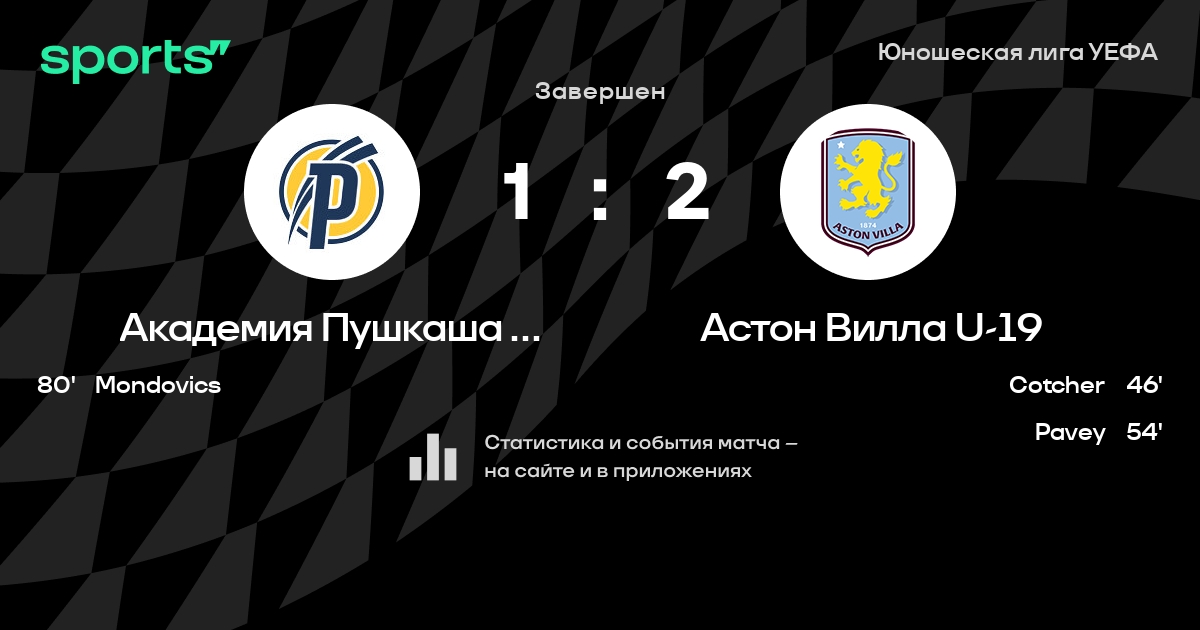 Трансляция Академия Пушкаша U-19 - Астон Вилла U-19