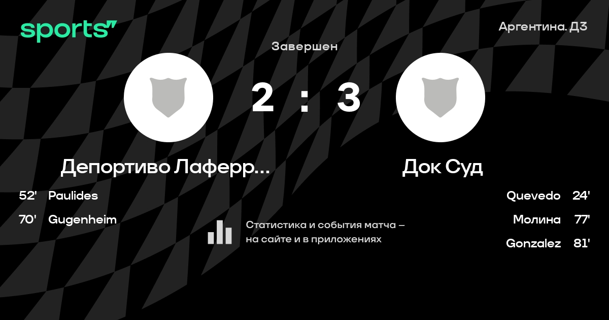 Депортиво Лаферрере – Док Суд: Док Суд забивает в 5 из 7 последних матчей против этого соперника