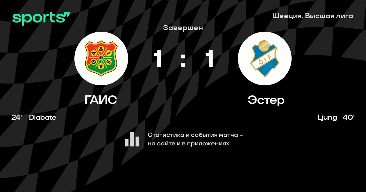 Результат прошлой игры в турнире «Аллсвенскан»: Броммапойкарна – ГАИС 0:2. После 28 туров ГАИС набирает 51 очков и занимает 3 место в турнире. Лучший бомбардир команды – I. Diabate: он забил 17 в 28 матчах. ГАИС побеждает в 3 последних матчах в рамках турнира «Аллсвенскан». В 5 последних матчах в турнире «Аллсвенскан» ГАИС обязательно забивает. В последних 5 играх ГАИС забивает 10 голов. В последних 5 играх ГАИС пропускает 4 голов.