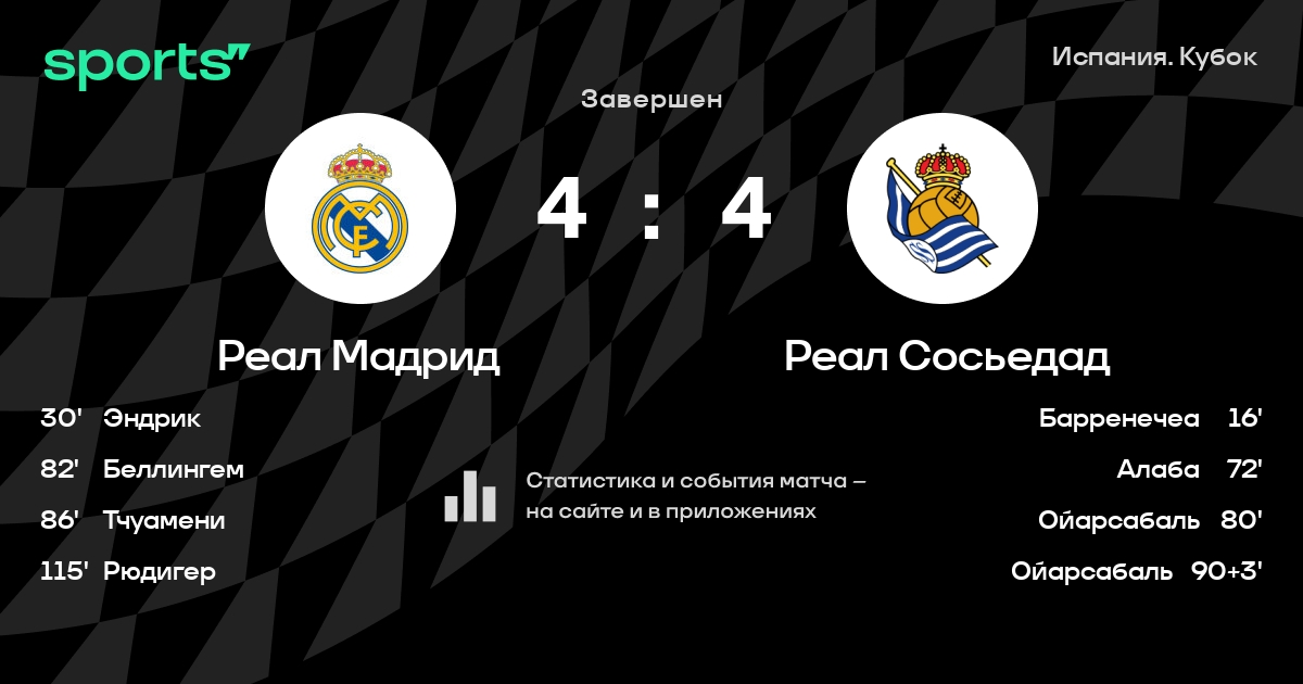 Реал Мадрид – Реал Сосьедад: Реал Мадрид побеждает в 4 последних очных матчах
