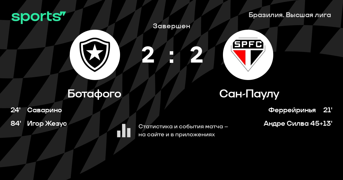 Ботафого – Сан-Паулу: Ботафого не проигрывает в 8 последних матчах против этого соперника