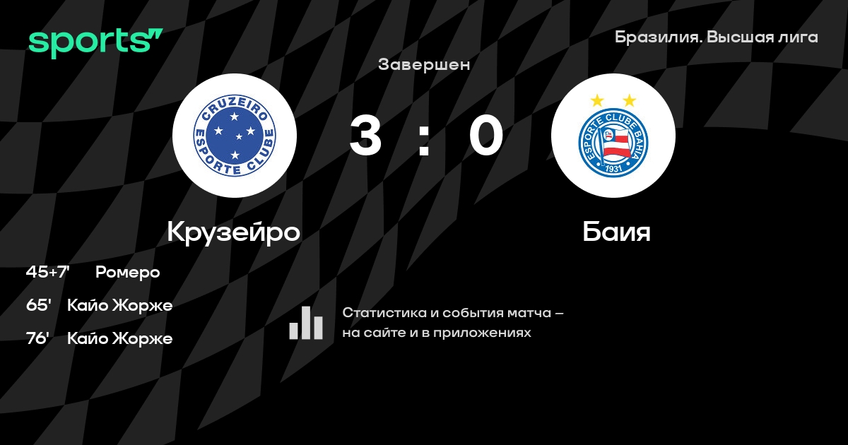 Крузейро – Баия: Крузейро не проигрывает в 7 последних матчах против этого соперника дома