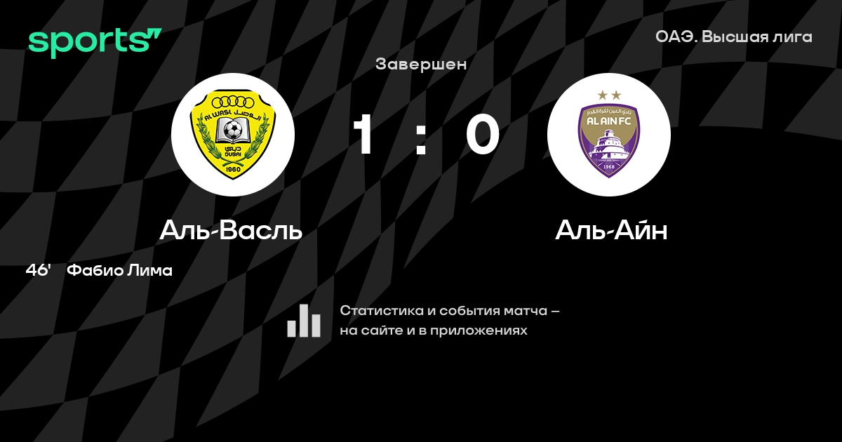 Аль-Васль – Аль-Айн: Аль-Айн не проигрывает в 6 из 8 последних матчей против этого соперника в гостях в турнире «Высшая лига»