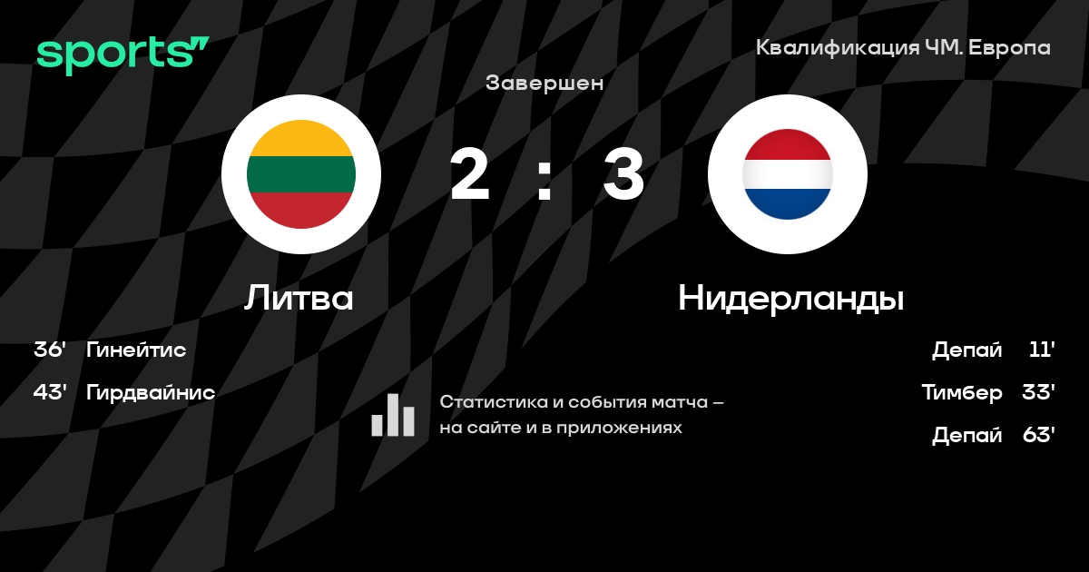 Квалификация ЧМ-2026: шансы Литвы и Нидерландов на победу в матче 6-го тура
