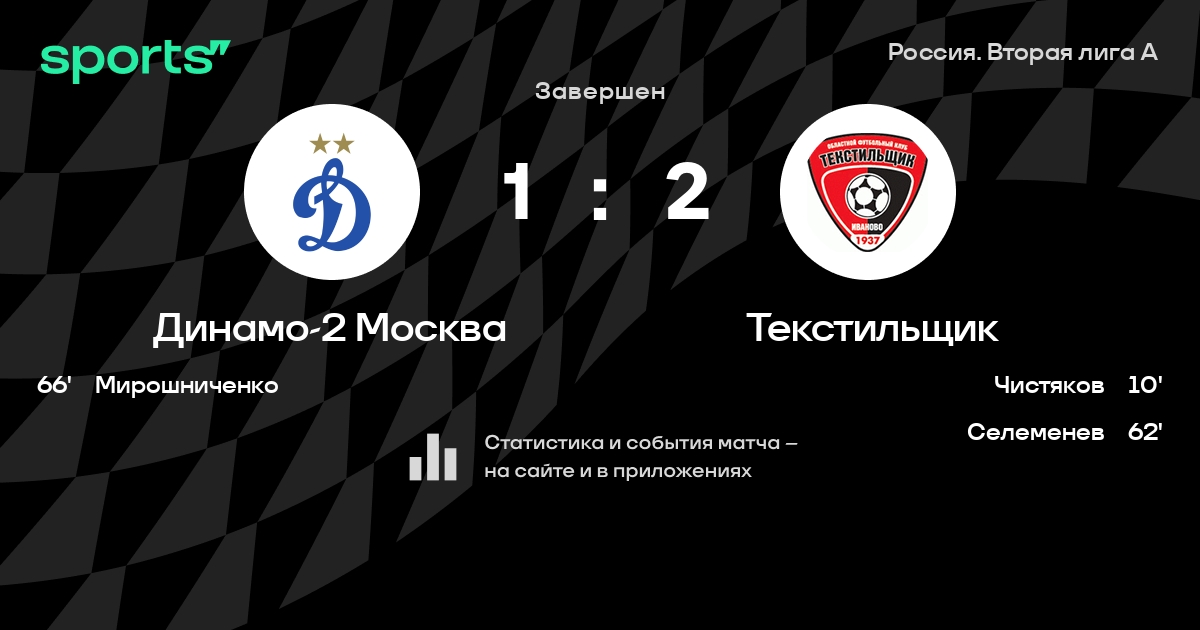 Динамо-2 Москва – Текстильщик: Текстильщик забивает в 5 последних матчах против этого соперника