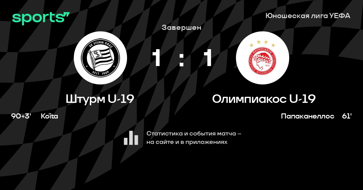 Трансляция Штурм U-19 - Олимпиакос U-19