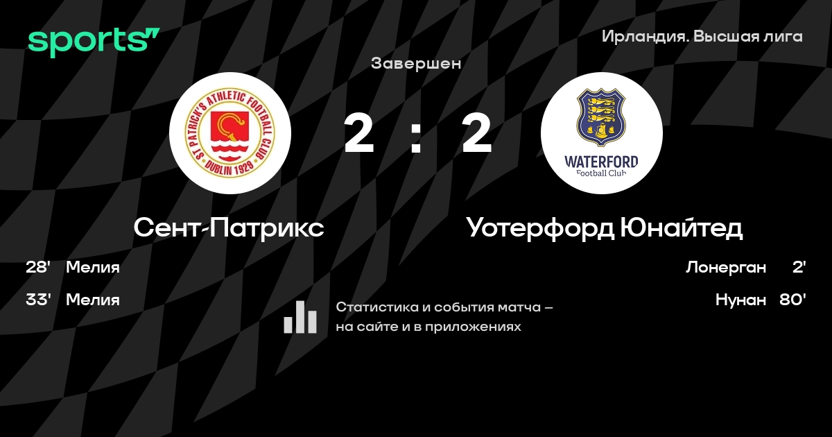 Сент-Патрикс – Уотерфорд Юнайтед: Сент-Патрикс забивает в 6 из 8 последних матчей против этого соперника