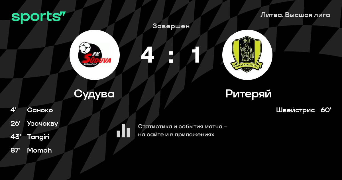 Судува – Ритеряй: Ритеряй забивает в 3 последних матчах против этого соперника