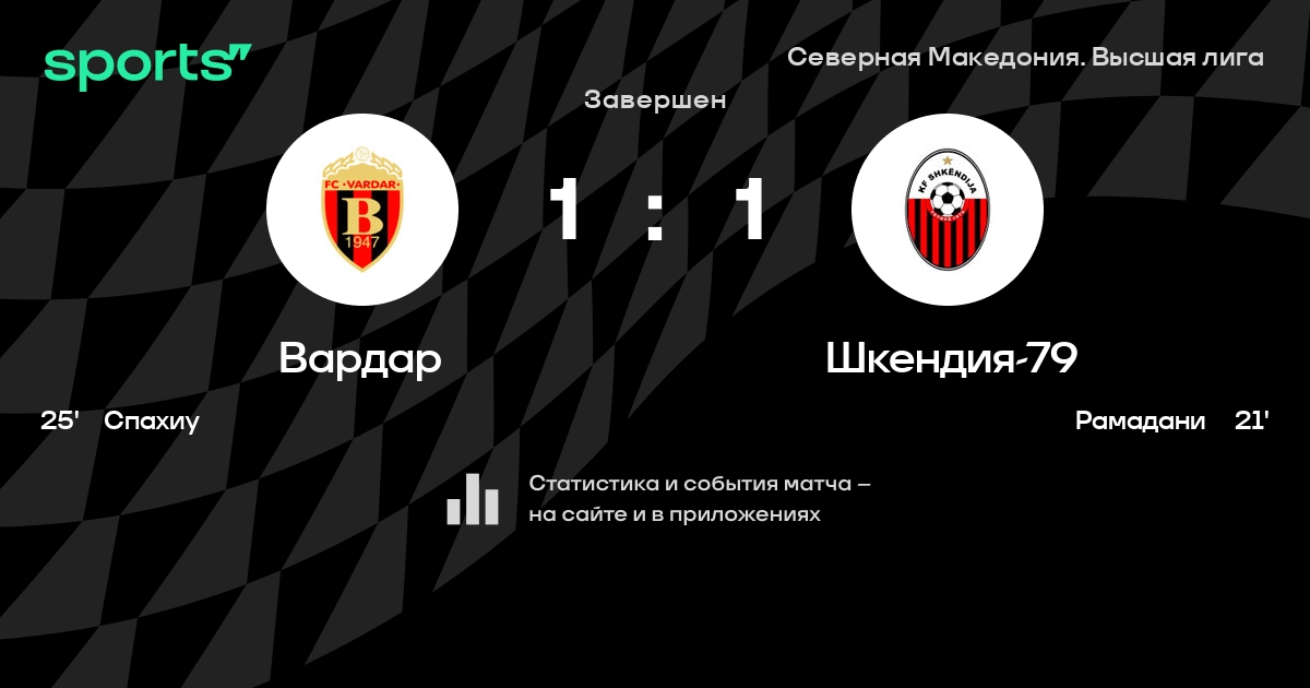 | 1 | Шкендия-79 | 33 | 20 | 10 | 3 | 59 | 30 | +29 | 70 | ||