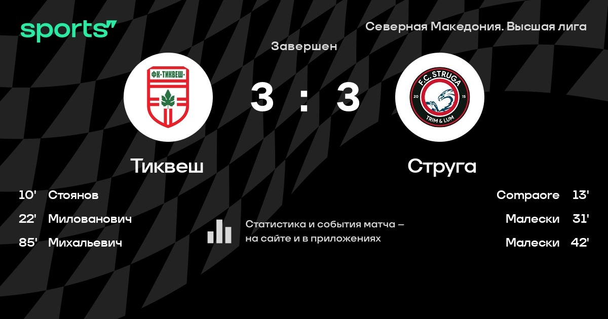 | 8 | Тиквеш | 33 | 7 | 13 | 13 | 25 | 33 | -8 | 34 | ||