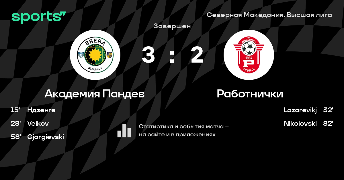 Академия Пандев – Работнички: Работнички не проигрывает в 6 из 8 последних матчей против этого соперника