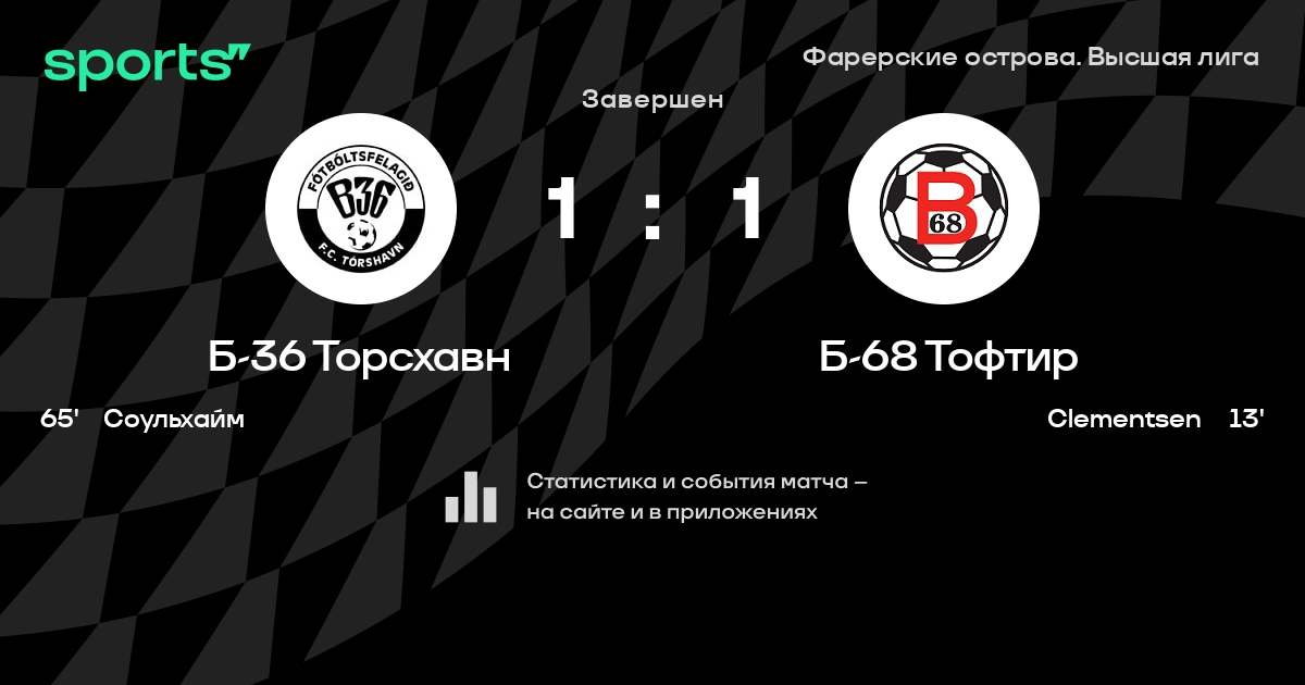Б-36 Торсхавн – Б-68 Тофтир: Б-36 Торсхавн не пропускает в 1 из 7 последних матчей против этого соперника