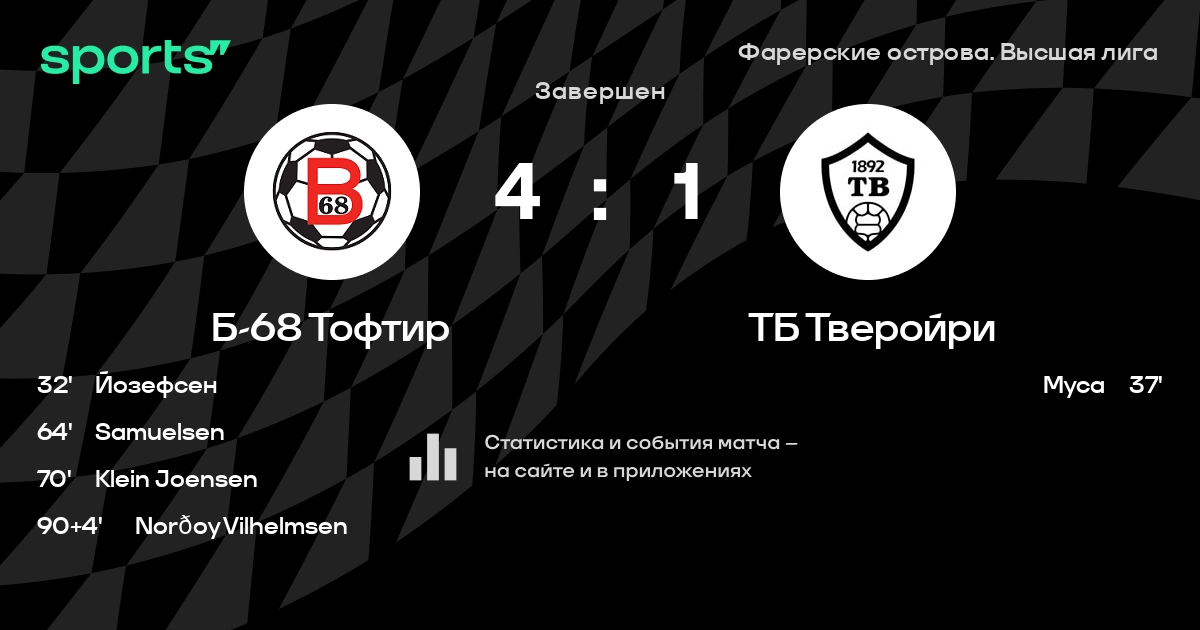 Б-68 Тофтир – ТБ Тверойри: ТБ Тверойри не проигрывает в 5 последних матчах против этого соперника